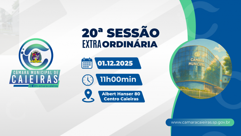 CÂMARA DE CAIEIRAS: SESSÃO EXTRAORDINÁRIA (20a) – 01.12.25